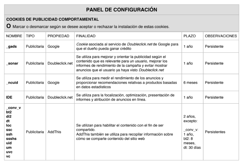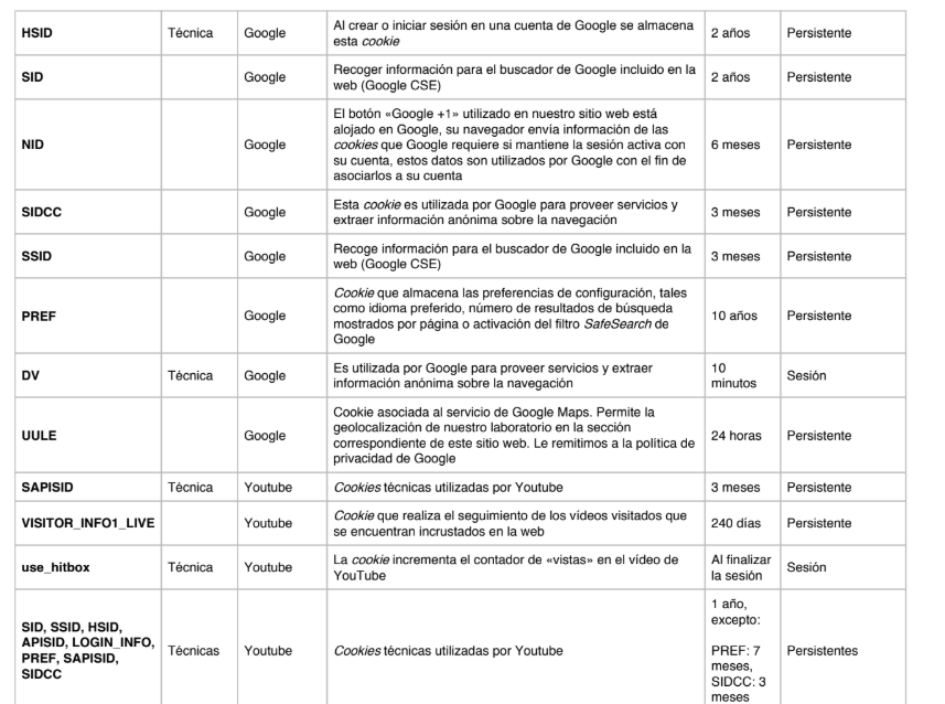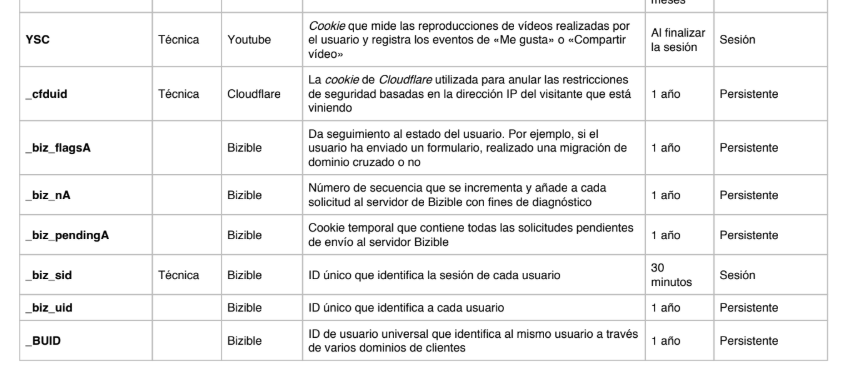 COOKIES DE TERCEROS NO CONTROLADAS POR EL EDITOR (Google, Youtube, Cloudflare, Bizible, etc.)