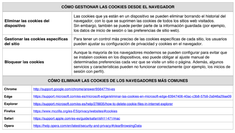 Criterios de conservación de los datos: según se especifica en el apartado de cookies utilizadas en la web.